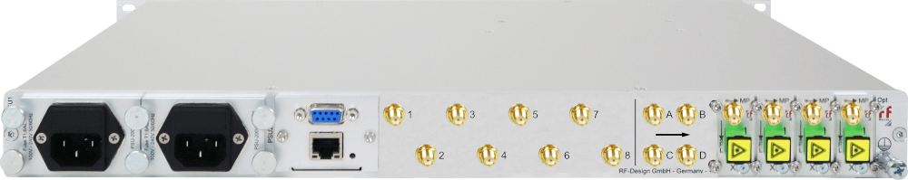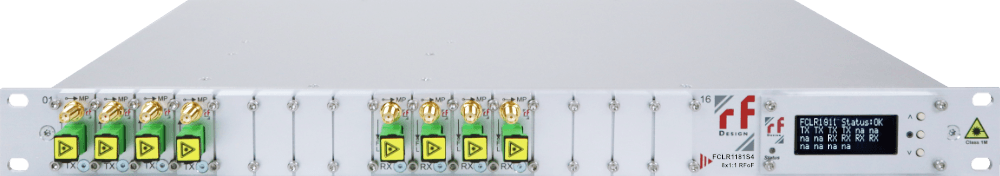 8 x 1:1 redundant TX/RX RF-over-Fiber with 4 x single TX/RX RF-over-Fiber Functionality
